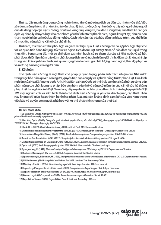 Nghiên cứu phân tích và làm rõ tầm quan trọng của chế định luật sư công (public defender system) trong việc bảo vệ quyền con người và đảm bảo công bằng pháp lý, đặc biệt đối với các nhóm yếu thế trong xã hội. Nghiên cứu nhấn mạnh vai trò của luật sư công như một cơ chế quan trọng, giúp đảm bảo quyền được trợ giúp pháp lý, tiếp cận công lý bình đẳng và nâng cao hiệu quả hoạt động của hệ thống tư pháp.